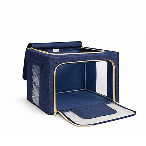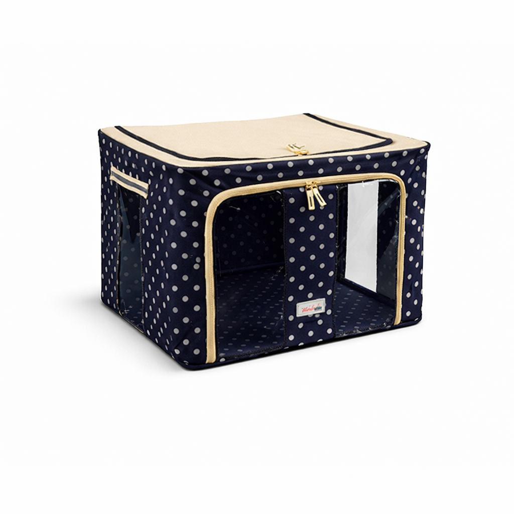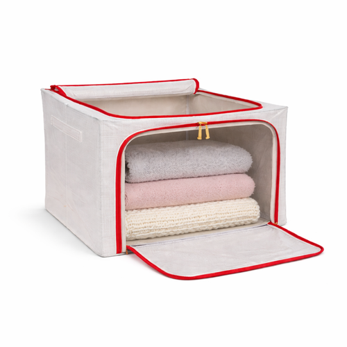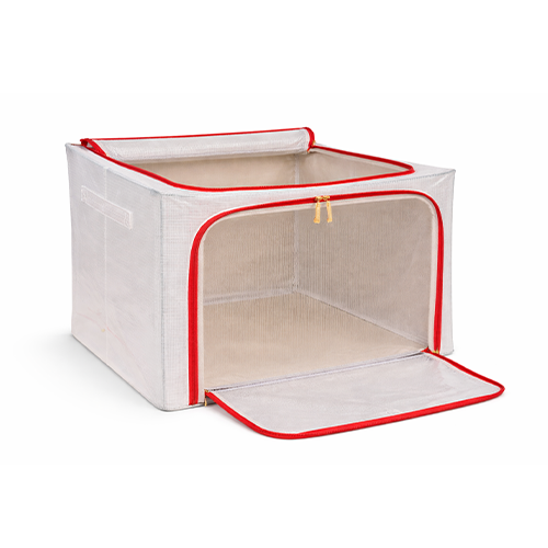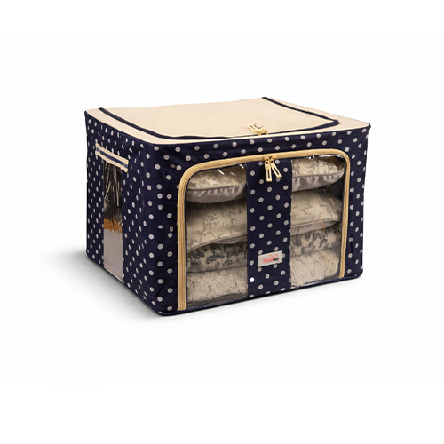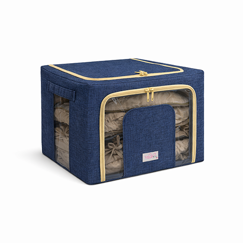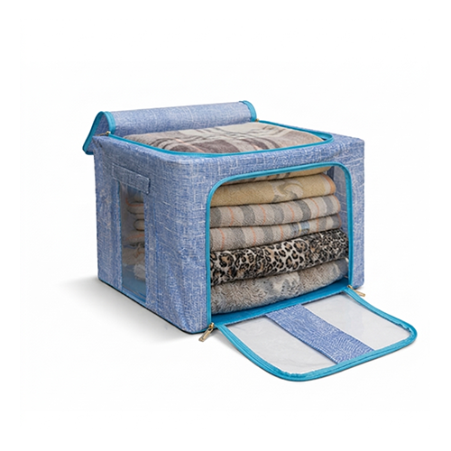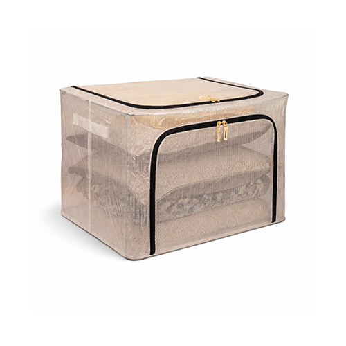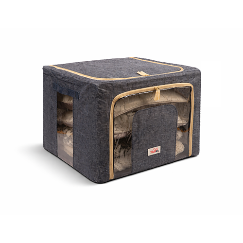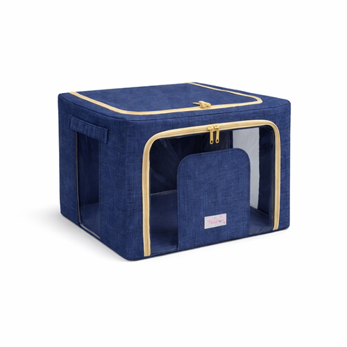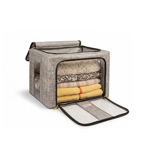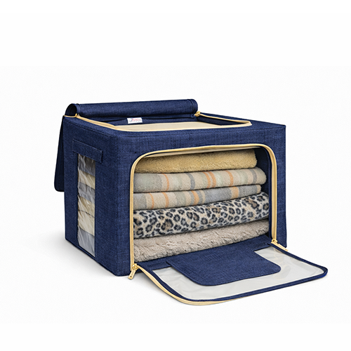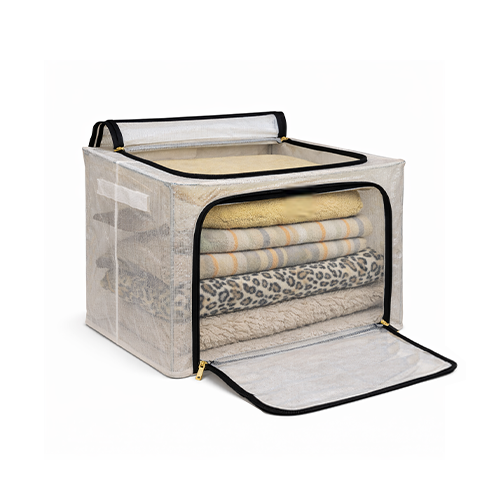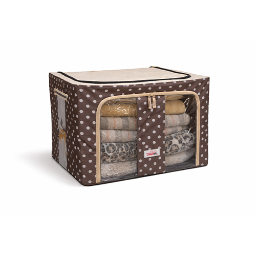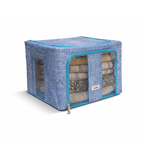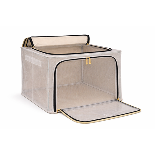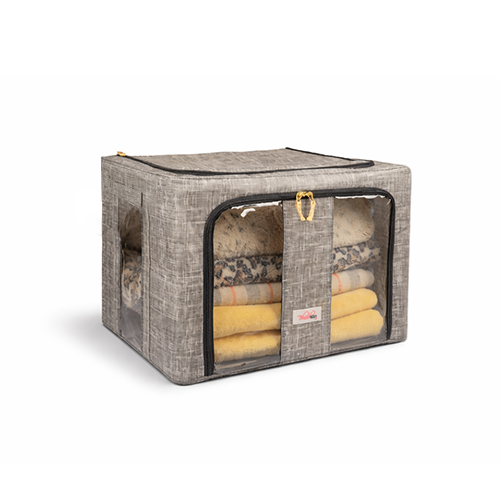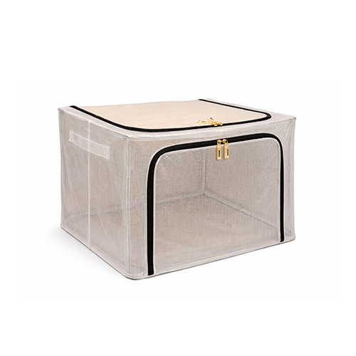The steel frame supports the fabric and keeps the box firm. Transparent viewing windows let you have a clear view of the items inside. Double zips on the sides and top ensure easy opening and closing. Two handles are for easy carry.