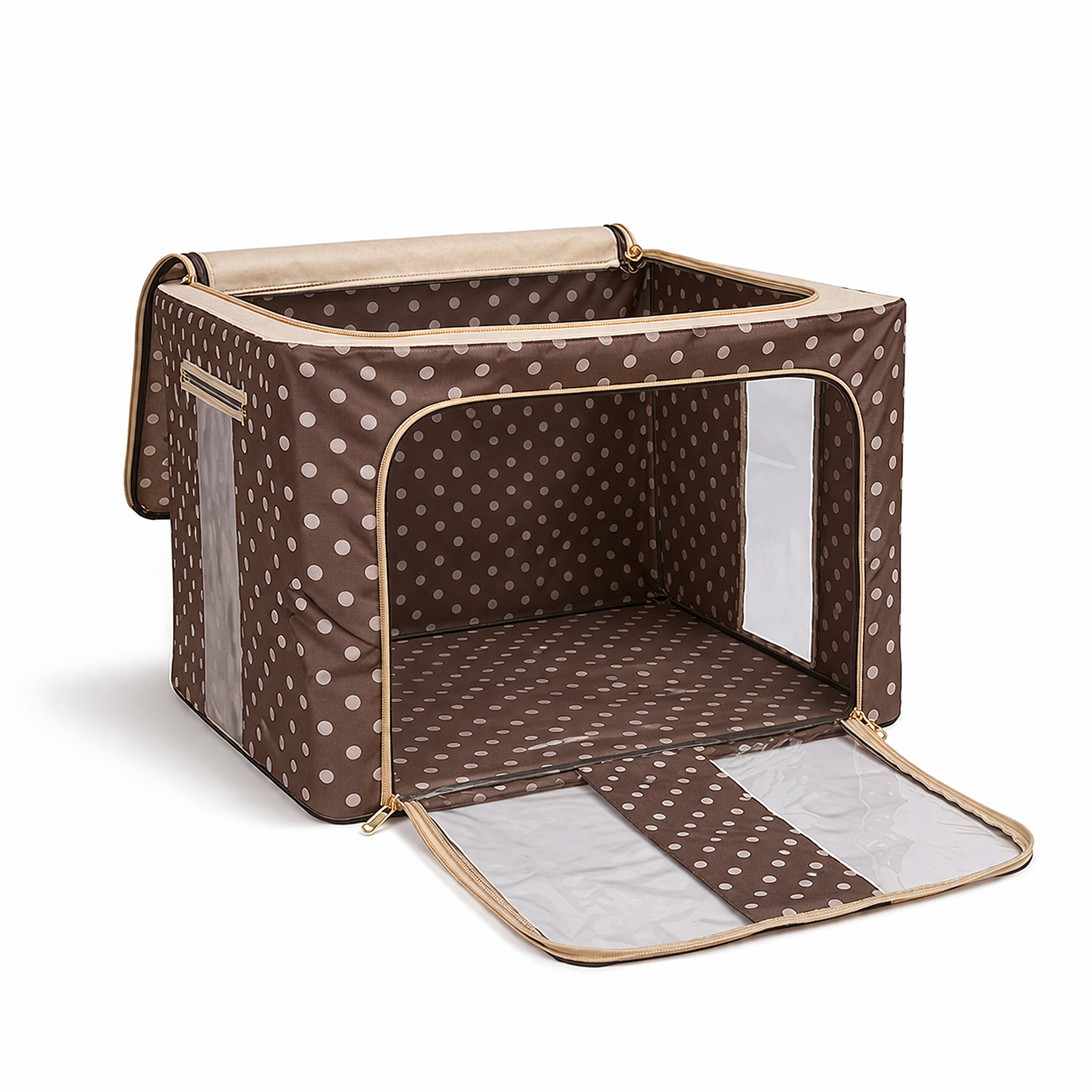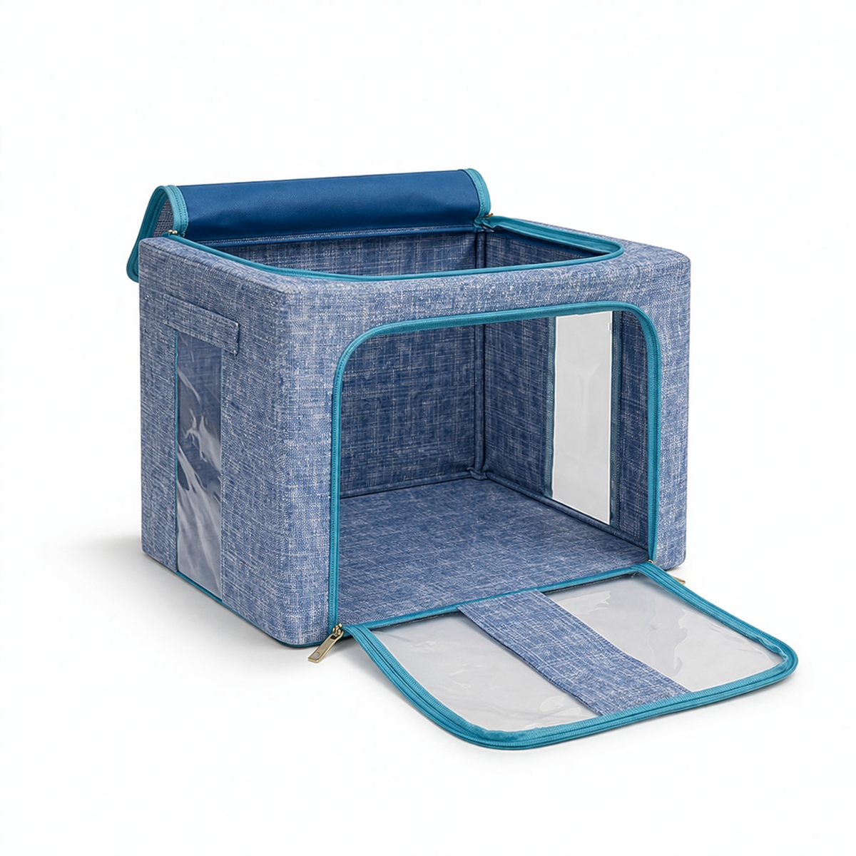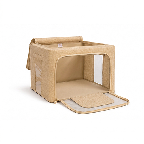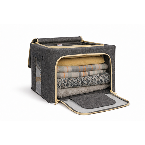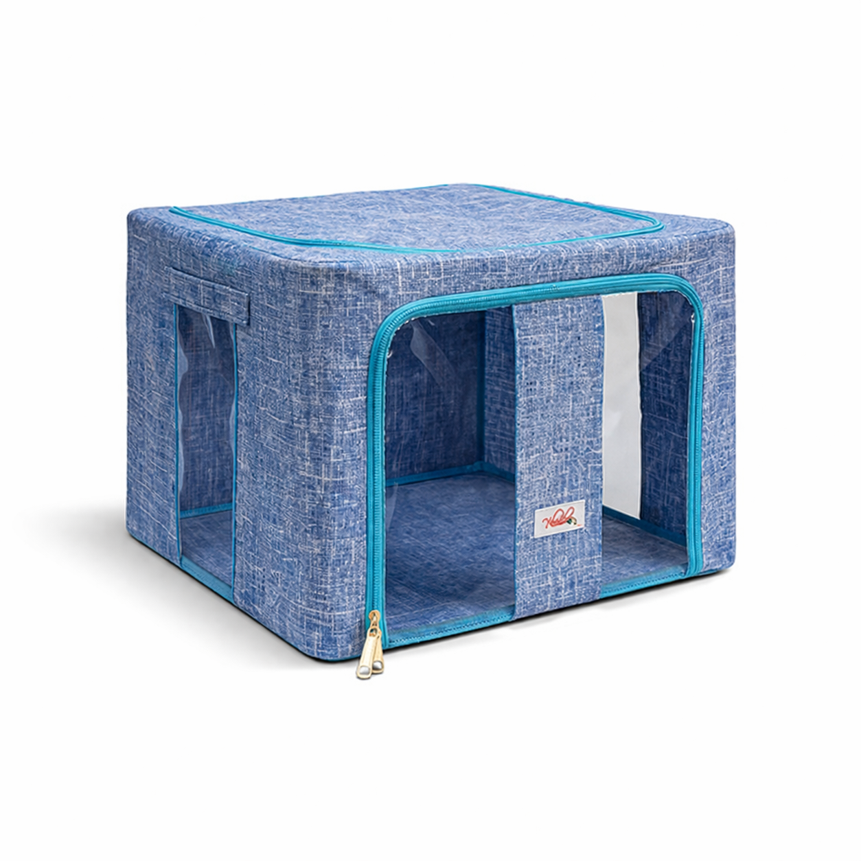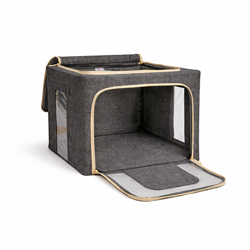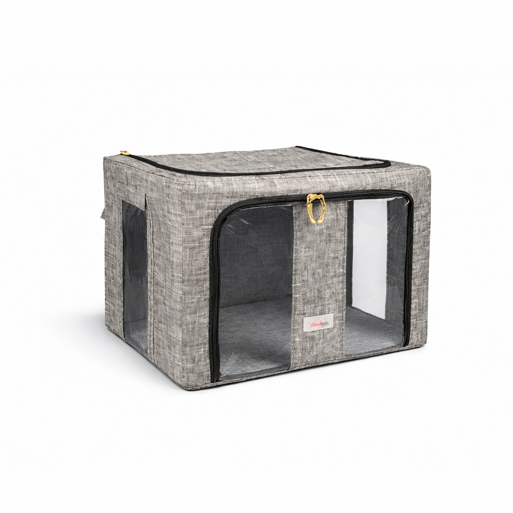 The steel frame supports the fabric and keeps the box firm. Transparent viewing windows let you have a clear view of the items inside. Double zips on the sides and top ensure easy opening and closing. Two handles are for easy carry.
